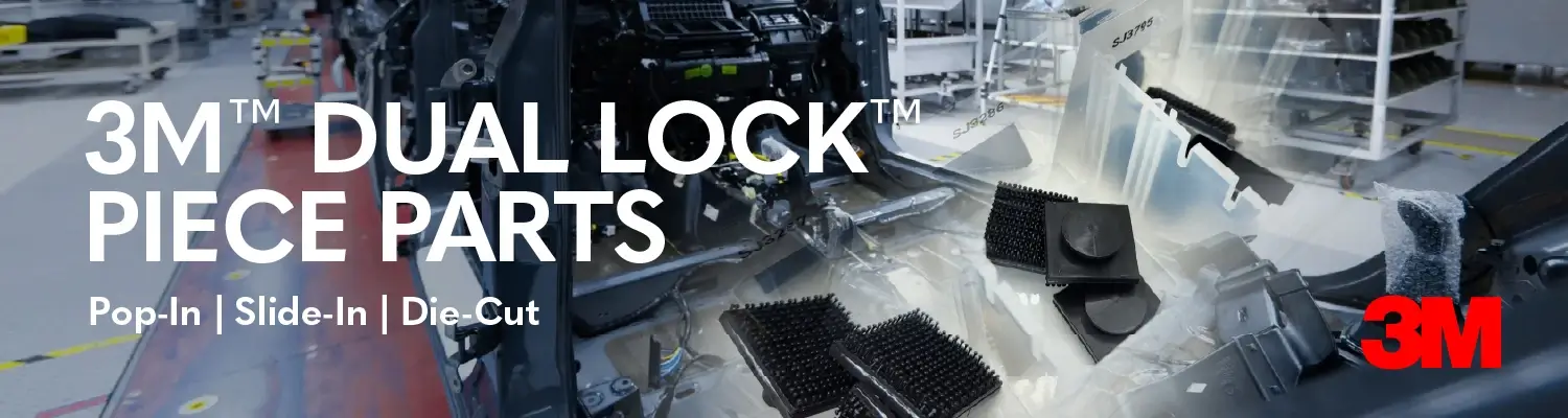 In the fast-paced world of automotive, truck, train, and bus manufacturing, every second counts on the assembly line. Traditional mechanical fasteners like screws and clips can slow production, require precise alignment, and add complexity to the manufacturing process. That’s why Halco is excited to announce our expanded access to 3M Dual Lock pop-in piece parts—a revolutionary fastening solution where Dual Lock reclosable fastener material comes pre-mated to custom plastic components.